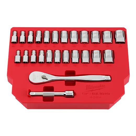 Most Versatile Sockets, Anti-Roll, Wrench-Ready Four Flat Sides on socket deter rolling Four Flat Sides feature wrench-ready design Ratchet has 90 tooth design with 4 deg arc swing for tight work spaces Slim profile head with flush directional lever Stamped socket sizes Portable Carrying Case