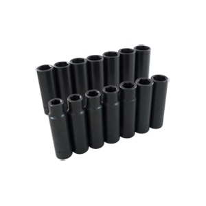 10 mm, 11 mm, 12 mm, 13 mm, 14 mm, 15 mm, 16 mm, 17 mm, 18 mm, 19 mm, 20 mm, 21 mm, 22 mm and 23 mm Deep Metric Impact Sockets