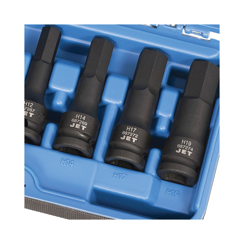 Set contains all popular sizes of hex bit power sockets
