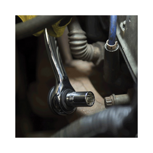 Patented offset ratchet handle offers unique safety features - reduces knuckle damage and improves socket positioning