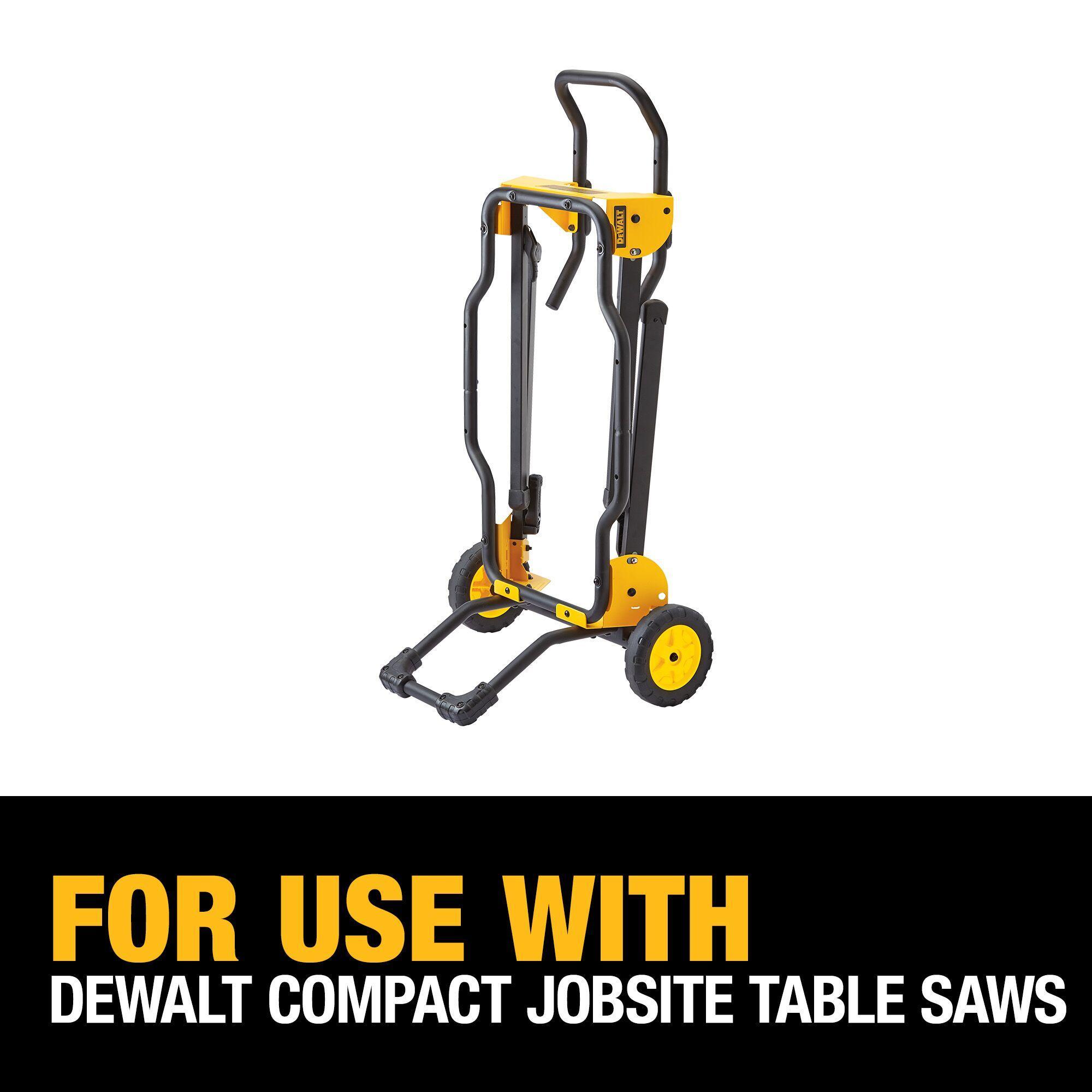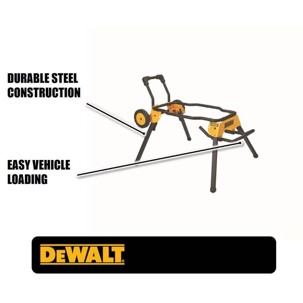 Rolling stand designed for easy set up and break down with excellent stability Lightweight stand for enhanced mobility Designed for easy loading and unloading into and out of vehicle Large heavy duty wheels designed to easily roll over steps, curbs and debris Folding legs with quick-release levers which retract under the stand in a few seconds for easy and quick transport Heavy duty kick stand allows the stand to balance upright for mobility and storage Stand design allows transportation when the table saw is attached to the stand Universal brackets that will attach to most table saws