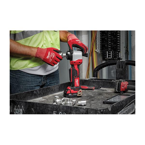 Protects against knife injuries on the job Part of the M18 system, featuring over 200 plus cordless solutions Depth gauge adjustment up to 3 in for accurate, consistent strips Optimized bushing design prevents nicks Variable speed trigger for controlled strips Ability to strip in crowded panels and switch gears Quick-change bushing system for faster stripping across sizes Compatible with all M18 batteries