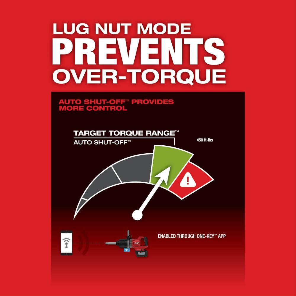 POWERSTATE brushless motor delivers up to 2000 ft-lb nut-busting torque, making it the worlds most powerful cordless impact wrench Unmatched productivity with the runtime to remove and install up to 120 lug nuts on a single HIGH OUTPUT HD12 Ah battery ONE-KEY enabled lug nut mode prevents over-torque and more control through auto Shut-Off 4-mode DRIVE CONTROL provides greater control over output speed and power ONE-KEY compatible - ability to customize, track and manage tools for increased productivity and investment protection, includes the ability to set a repeatable torque output for maximum control Tri-LEDs deliver high definition lighting to increase workspace visibility and access with less shadows Lanyard loop included allows for safer use and easier storage A patented battery isolation system manages high frequency vibrations, enabling battery movement that prevents damage and ensures a constant connection between the battery and tool when in use REDLINK PLUS intelligence ensures maximum performance and protects from overloads, heating and over-discharge