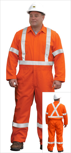 2" silver retroreflective tape stitched to the coverall in positions as follows: