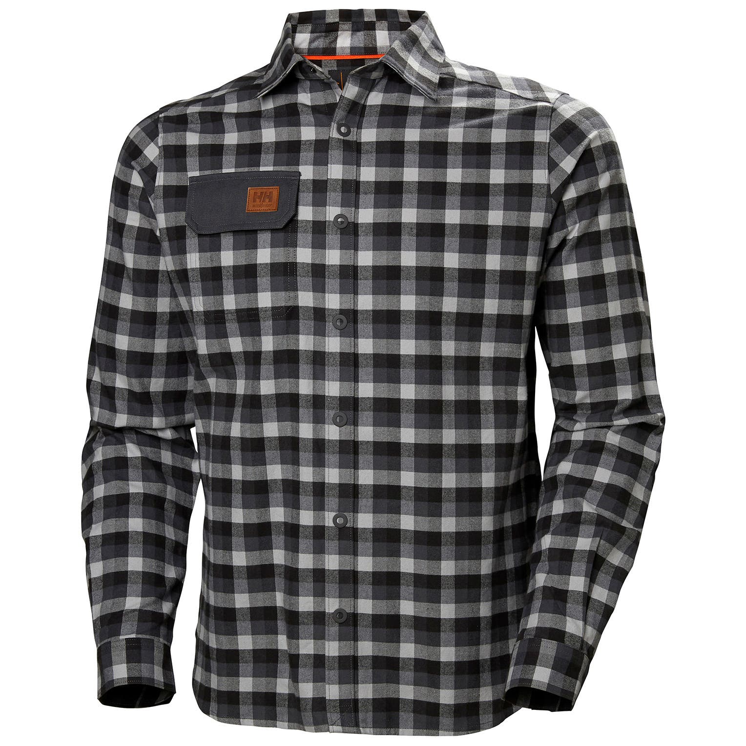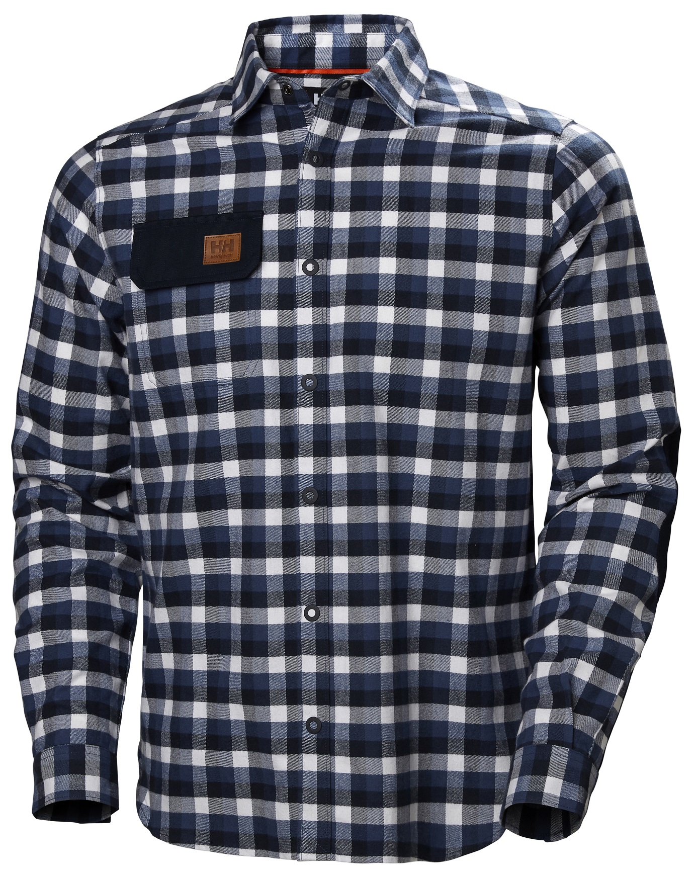Snap button closure at front and on cuffs
