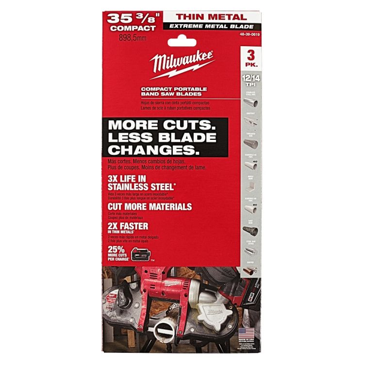 More cuts, less blade changes 3X life in stainless steel and other extreme metals Fastest cutting blade in thick, hard metals Aggressive tooth design for 2X faster cuts in thick metals 25 Percent More cuts per charge Variable TPI, cuts more materials Optimized tooth design for clean cuts One blade for all metal thicknesses 35-3/8 in length - fits any saw this size