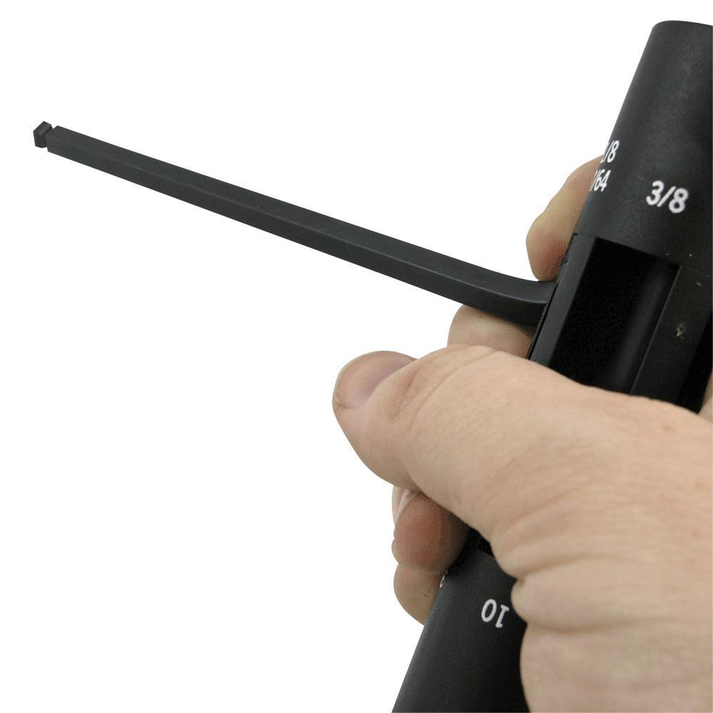 Patented Hextractor design removes up to 85 Percent rounded fasteners, making removal fast and easy Safe for use on undamaged fasteners Allows angle entry for easy access to hard to reach fasteners Provides same torque values as standard hex keys Heat-treated CRV steel for professional use Patented case can be used as a T or L handle Part of JETs Damaged Fastener Solutions Program Fully hardened steel case with ergonomic bi-material grip for added comfort and sure grip Unique offset washer between keys applies tension, holding keys firmly in place while in use