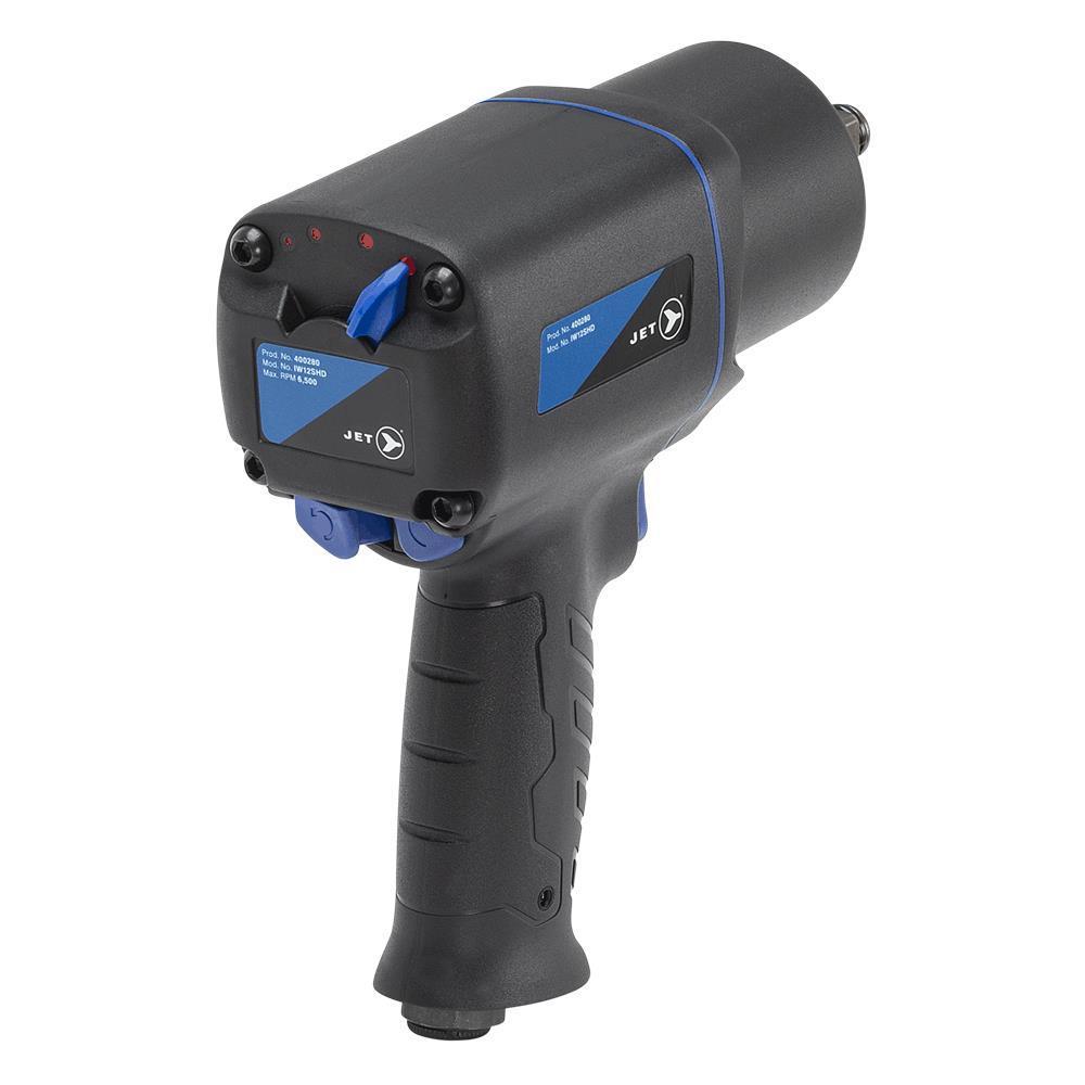 The twin hammer mechanism reduces vibration and increases durability Benefits Made from lightweight and durable aluminum, the impact- and chemical-resistant housing protects against repeated drops and exposure to shop fluids Design Weighing only 4.4 lb., these 1/2 Drive Air Impact Wrench has a lightweight and balanced design For maximum performance we recommend 90 PSI air pressure Reversible With an ultra-compact design for confined workspaces, these super heavy-duty impact wrenches produce 1100 ft-lb of max torque in reverse Pistol grip design allows improved access and maximum power Forward and reverse valve is equipped with multiple positive throttle settings Three-piece construction allows quick and easy maintenance Exhaust is directed away from the operator for added convenience Anvil features pin hole and spring clip type socket retainer Extra lightweight styles available for added comfort (400280/400435)