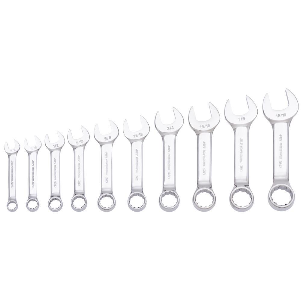 Stubby beam length for when clearance is limited Full polish finish resists rust and corrosion and is easy to clean Box ends are offset 15 deg for clearing obstructions and knuckle clearance on flat surfaces 12 point TORQUE DRIVE design on box end increases torque strength while reducing fastener rounding Sizes are stamped on the head for quick, easy, and permanent identification